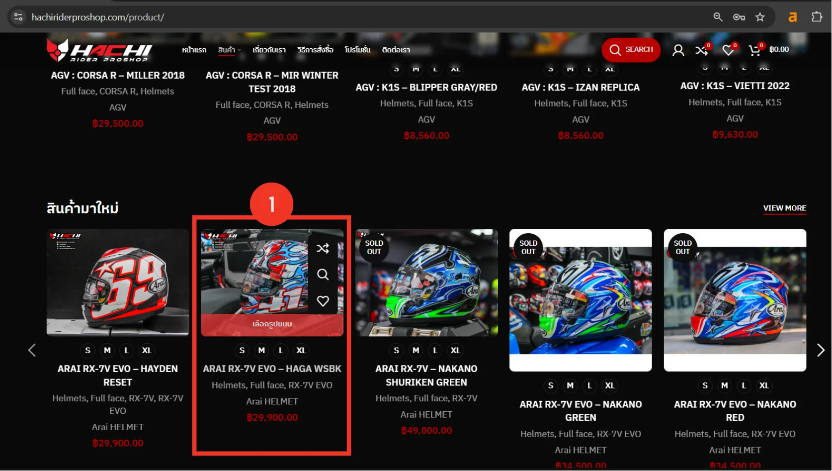 เลือกสินค้า: เข้าหน้าสินค้าแล้วคลิกเลือกรายการที่ต้องการ