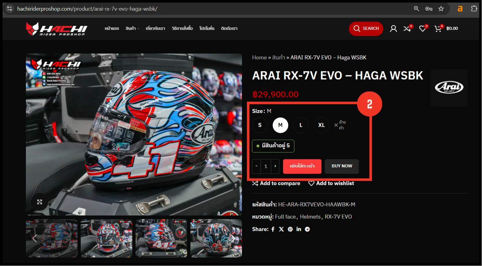 ระบุตัวเลือก: เลือกสี/ขนาด (ถ้ามี) แล้วคลิก “เพิ่มลงตะกร้า”