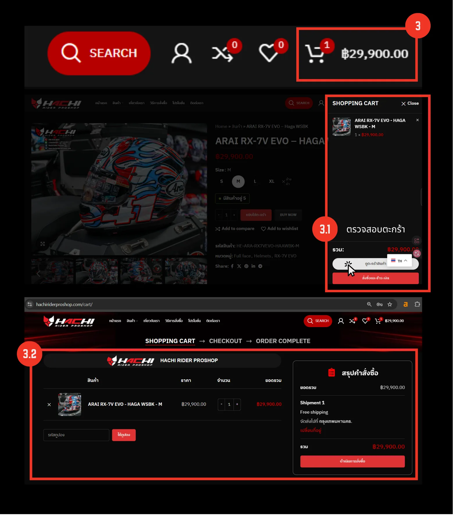 ดำเนินการสั่งซื้อ: คลิกปุ่ม “สั่งซื้อ”