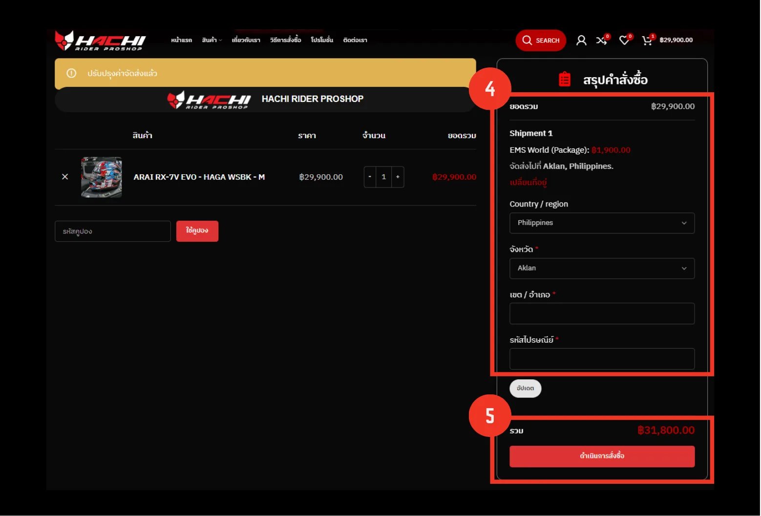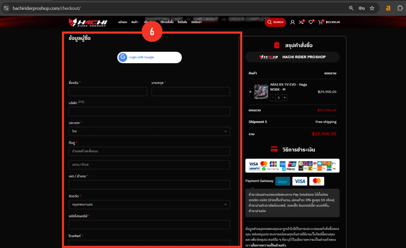 กรอกข้อมูล: ใส่ชื่อ-ที่อยู่สำหรับจัดส่งให้ครบถ้วน