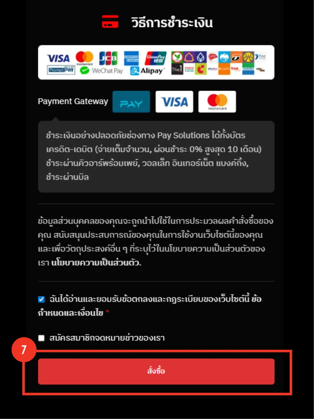 ยืนยันการสั่งซื้อ: คลิก “สั่งซื้อ” และดำเนินการชำระเงินตามวิธีที่เลือก