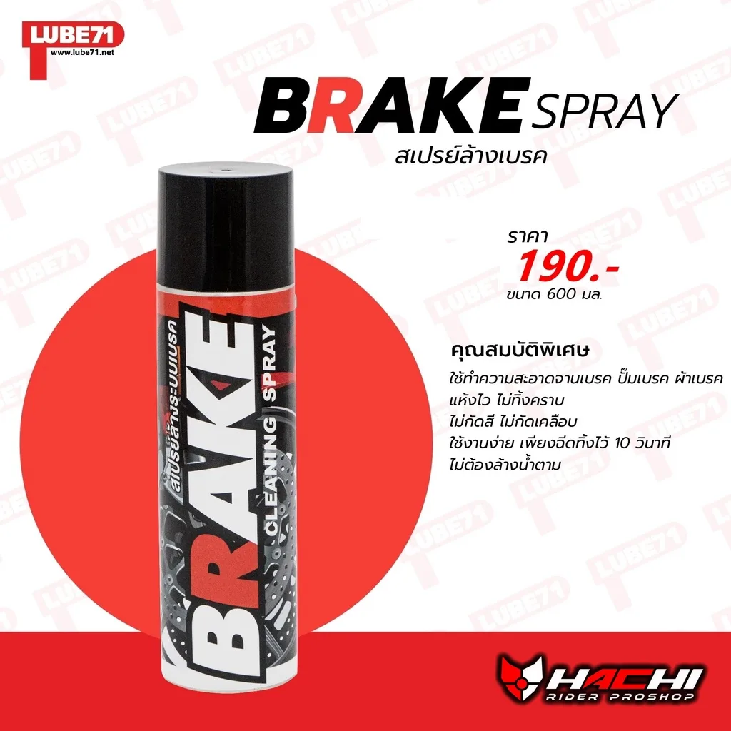 Brake Spray – ใช้ทำความสะอาดจานเบรค ปั๊มเบรค ผ้าเบรค แห้งไว ไม่ทิ้งคราบ ไม่กัดสี ไม่กัดเคลือบ ใช้งานง่าย เพียงฉีดทิ้งไว้ 10 นาที ไม่ต้องล้างน้ำตาม