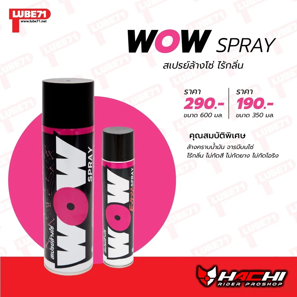 Wow Spray – ล้างคราบน้ำมัน จารบีบนโซ่ ไร้กลิ่น ไม่กัดสี ไม่กัดยาง ไม่กัดโอริง