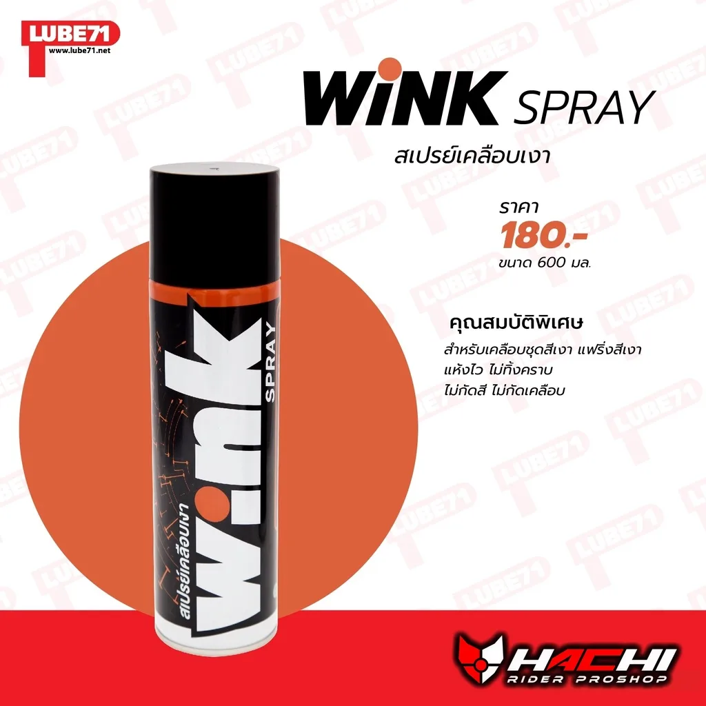 Wink Spray – สำหรับเคลือบหมวกกันน็อคสีเงา แฟริ่งสีเงา แห้งไว ไม่ทิ้งคราบ ไม่กัดสี ไม่กัดเคลือบ